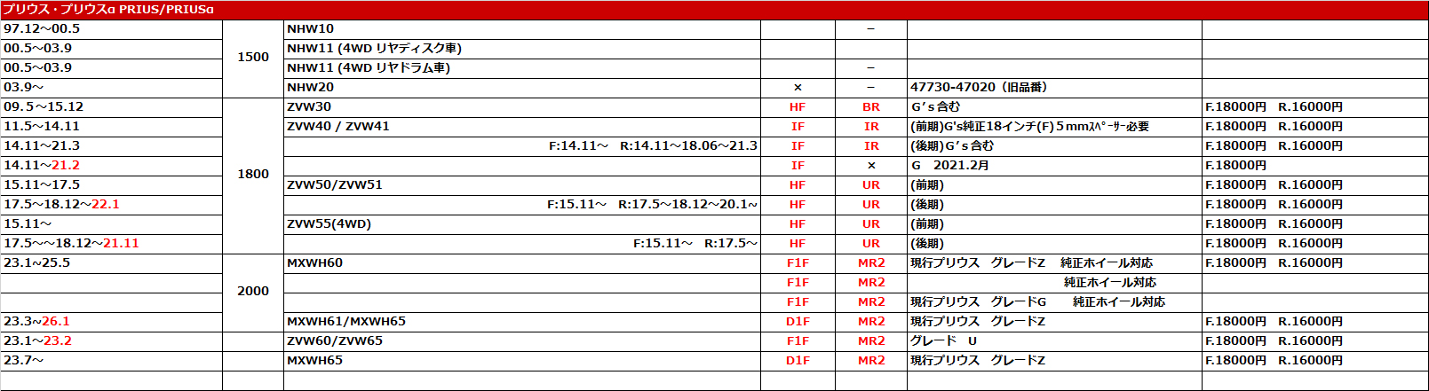 30系プリウスでG's純正18インチホイルでの装着にはフロント8mm、リア8mmのスペーサーで適合確認が取れましたが、クリアランスはぎりぎりです。プリウスαはG's純正18インチホイールでフロントのみ5mmのスペーサーが必要。